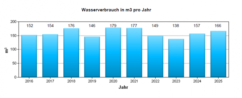 Der durchschnittliche Pro-Kopf-Verbrauch in Ein- und Mehrfamilienhäusern beträgt bei der WLU rund 135 Liter pro Tag oder 49 m3 pro Jahr (2025). Der durchschnittliche „Musterhaushalt“ mit z. B. vier Personen benötigt also = 196 m3/Jahr (4 X 49 m3). Dieser Wert ist in der langjährigen Tendenz leicht fallend (Wassersparende Armaturen und WC-Spülungen etc.).